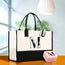 Floral Monogram Cotton Canvas Tote Bag Personalized Bridesmaid Gift Bag Wedding Birthday Gift Custom Name Tote Maid of Honor Wedding Gift