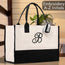 Personalized Cotton Canvas Beach Tote Bag Monogram Tote Bag Initial Canvas Tote Bridesmaid Gift Tote Custom Beach Bag Gift for Her A-Z