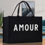 Amour Cotton Canvas Chic Beach Tote Bag Multipurpose Tote Weekender Tote Gift for Her Outdoor Tote Vacation Tote Large Beach Bag
