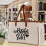 ❤ MATERIAL & COLOR: 100% High Quality Eco-Friendly Cotton Canvas with Camel color piping and leather handle.