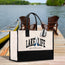 Custom Lake Life Cotton Canvas Chic Beach Jute Bag Multipurpose Tote Weekender Tote Gift for Her Vacation Tote Beach Bag Boat Bag (LLT1018)