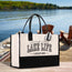 Custom Lake Life Cotton Canvas Chic Beach Tote Bag Multipurpose Tote Weekender Tote Gift for Her Vacation Tote Beach Bag Boat Bag (LLT1008)