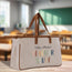 ❤ MATERIAL & COLOR: 100% High Quality Eco-Friendly Cotton Canvas with Camel color piping and leather handle.