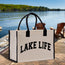 Lake Life Cotton Canvas Chic Beach Tote Bag Multipurpose Tote Weekender Tote Gift for Her Outdoor Tote Vacation Tote Beach Bag Boat Bag