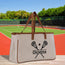 ❤ MATERIAL & COLOR: 100% High Quality Eco-Friendly Cotton Canvas with Camel color piping and leather handle.