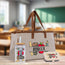 ❤ MATERIAL & COLOR: 100% High Quality Eco-Friendly Cotton Canvas with Camel color piping and leather handle.