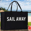 Sail Away Cotton Canvas Chic Beach Tote Bag Multipurpose Tote Weekender Tote Gift for Her Outdoor Tote Vacation Tote Large Beach Bag